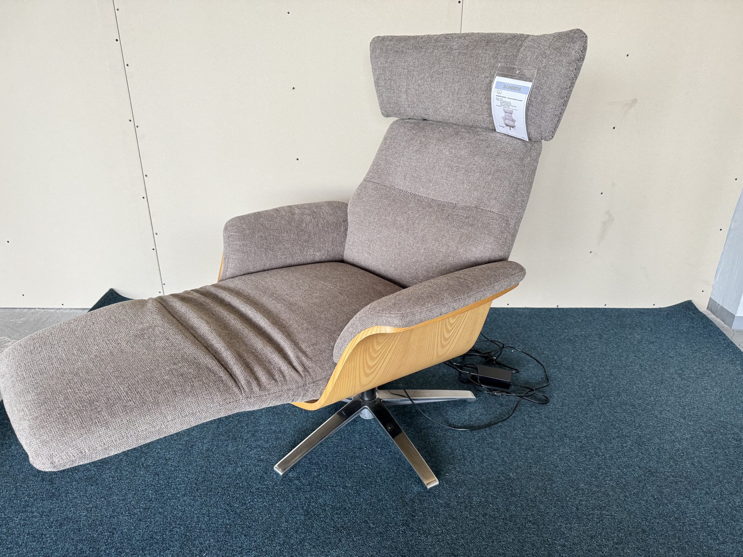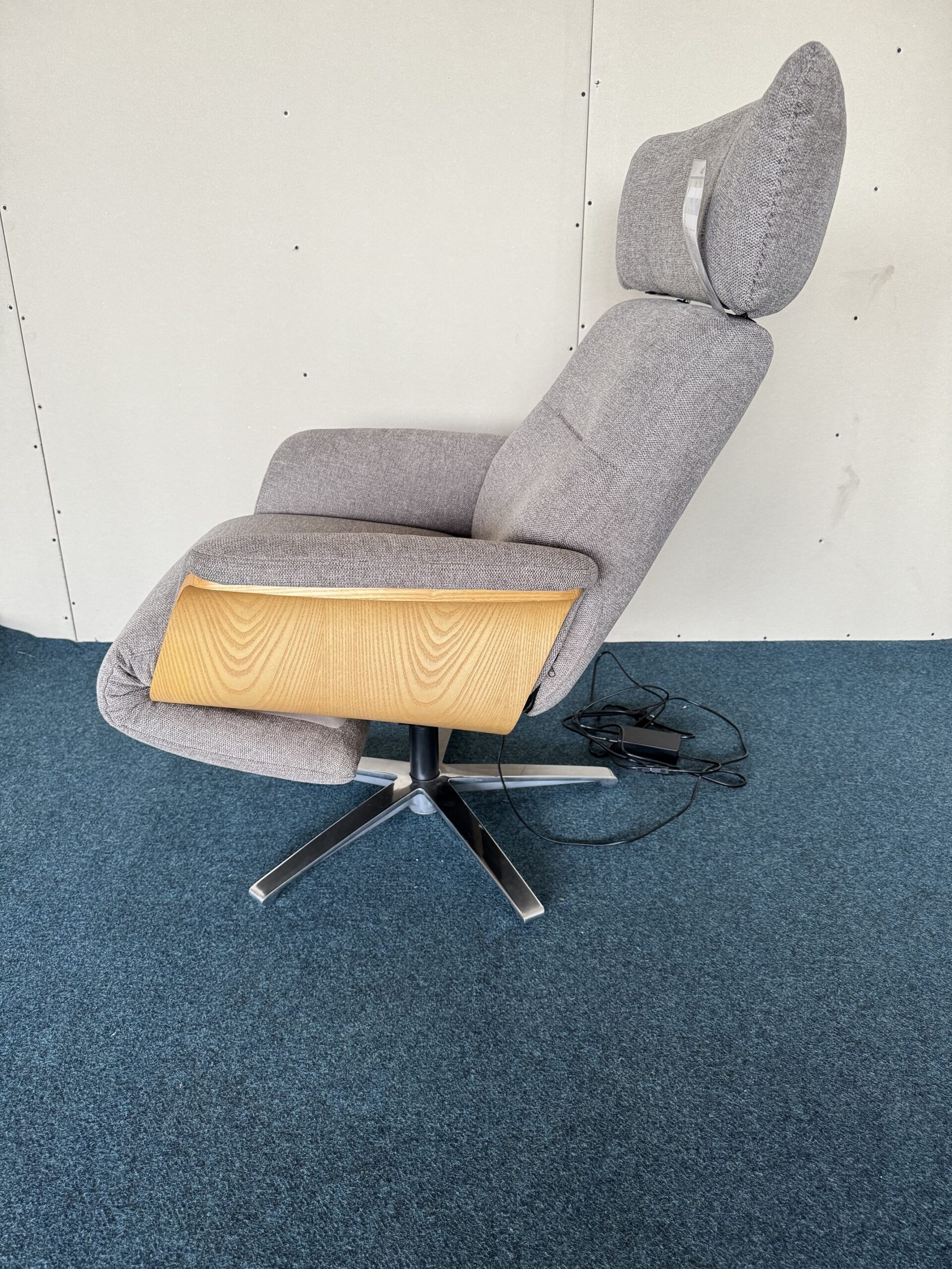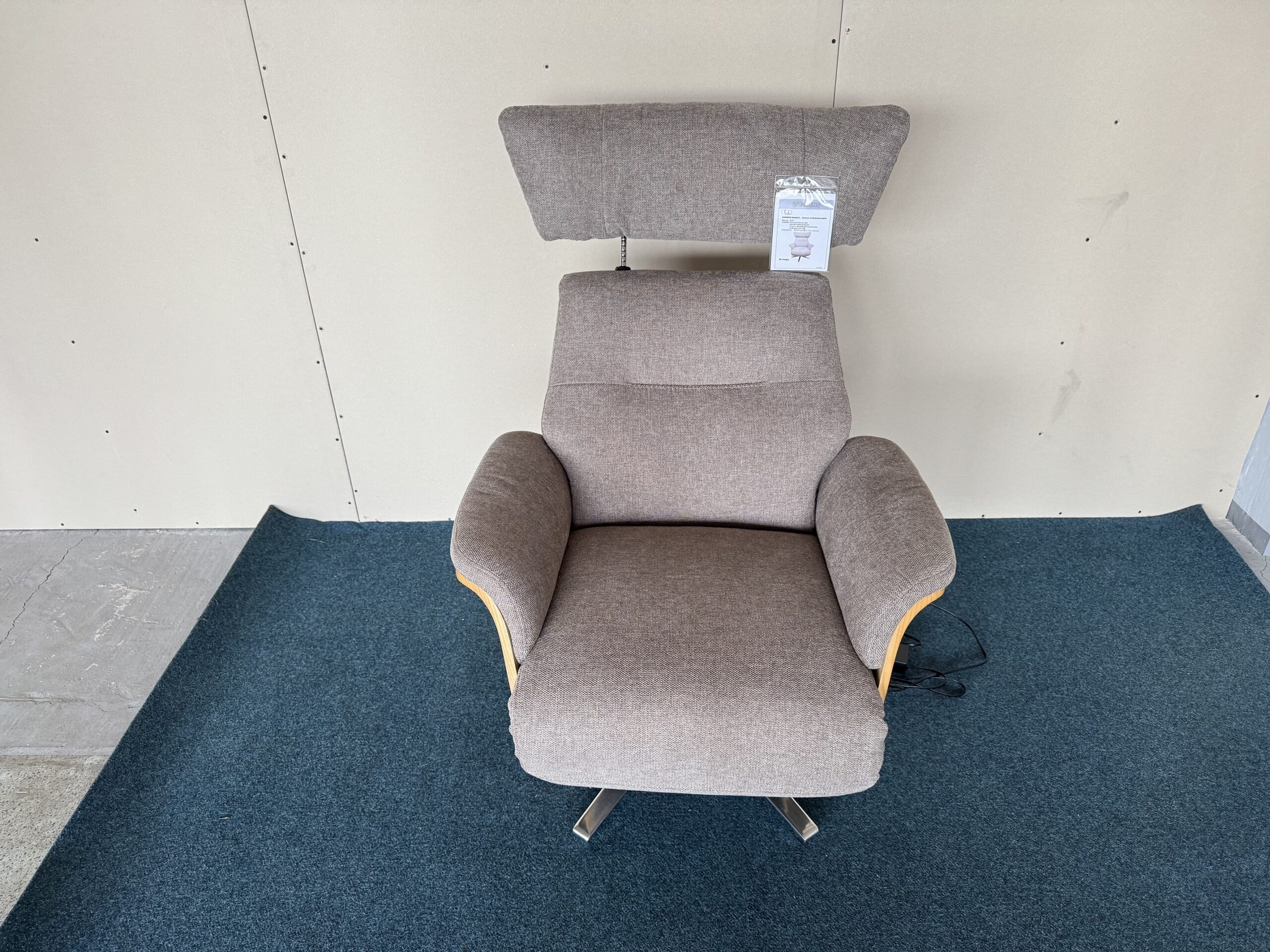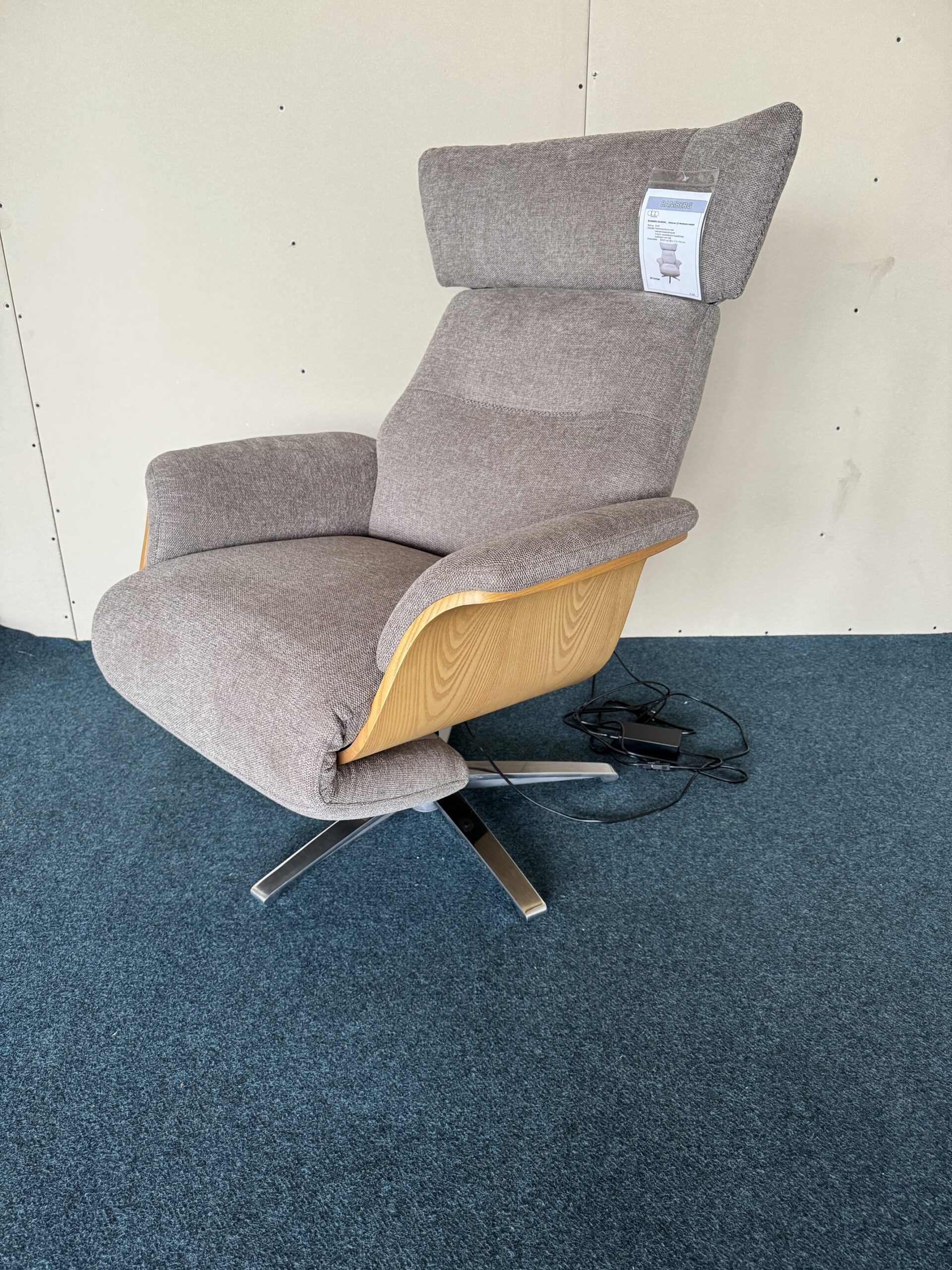 Atpūtas krēsls ar relax funkcijām. Audums+dabīgais koks. Ir USB