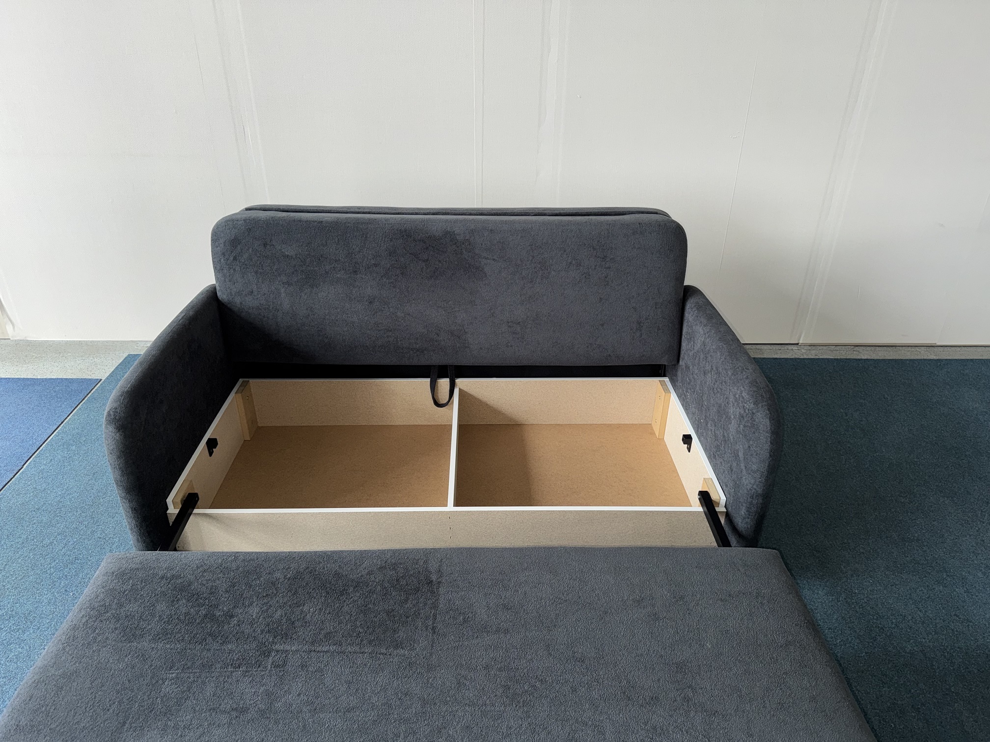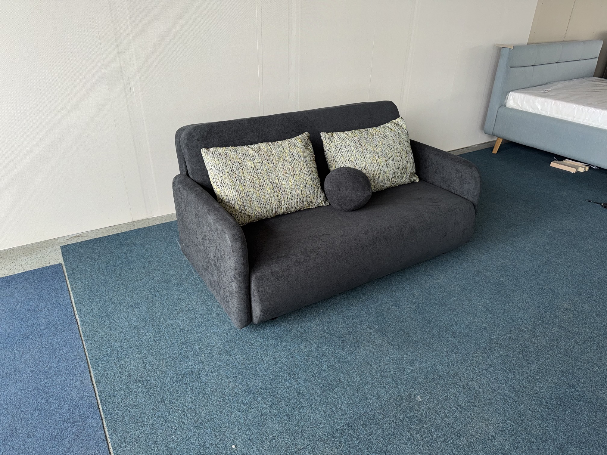 Dīvāns-auduma-izvelkams, ar veļas kasti+spilveni.