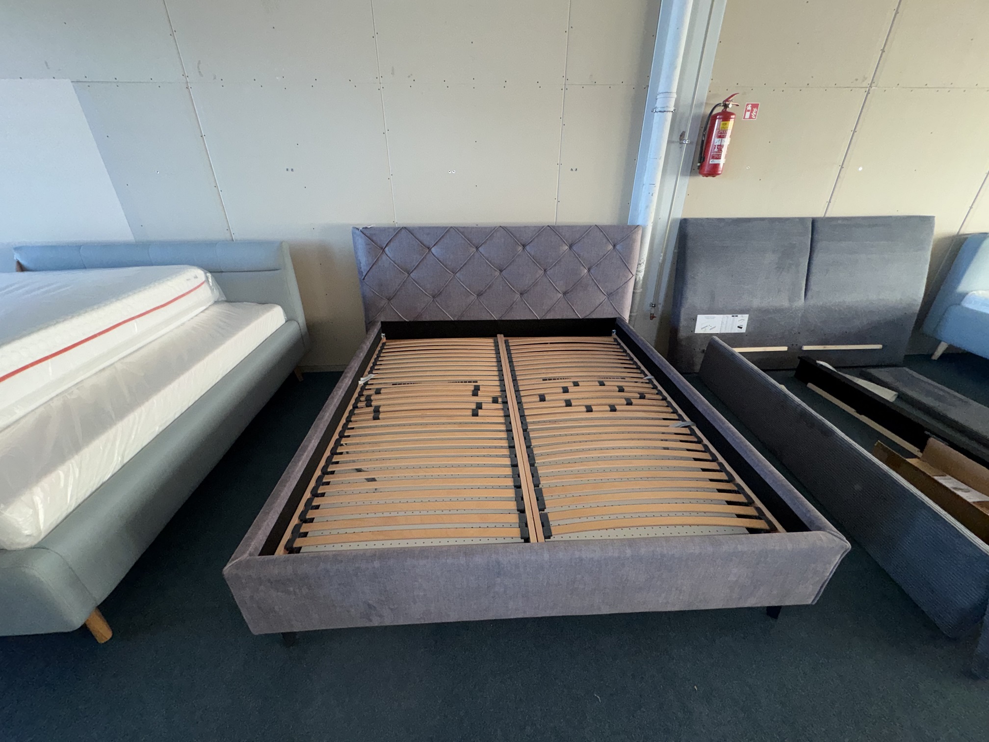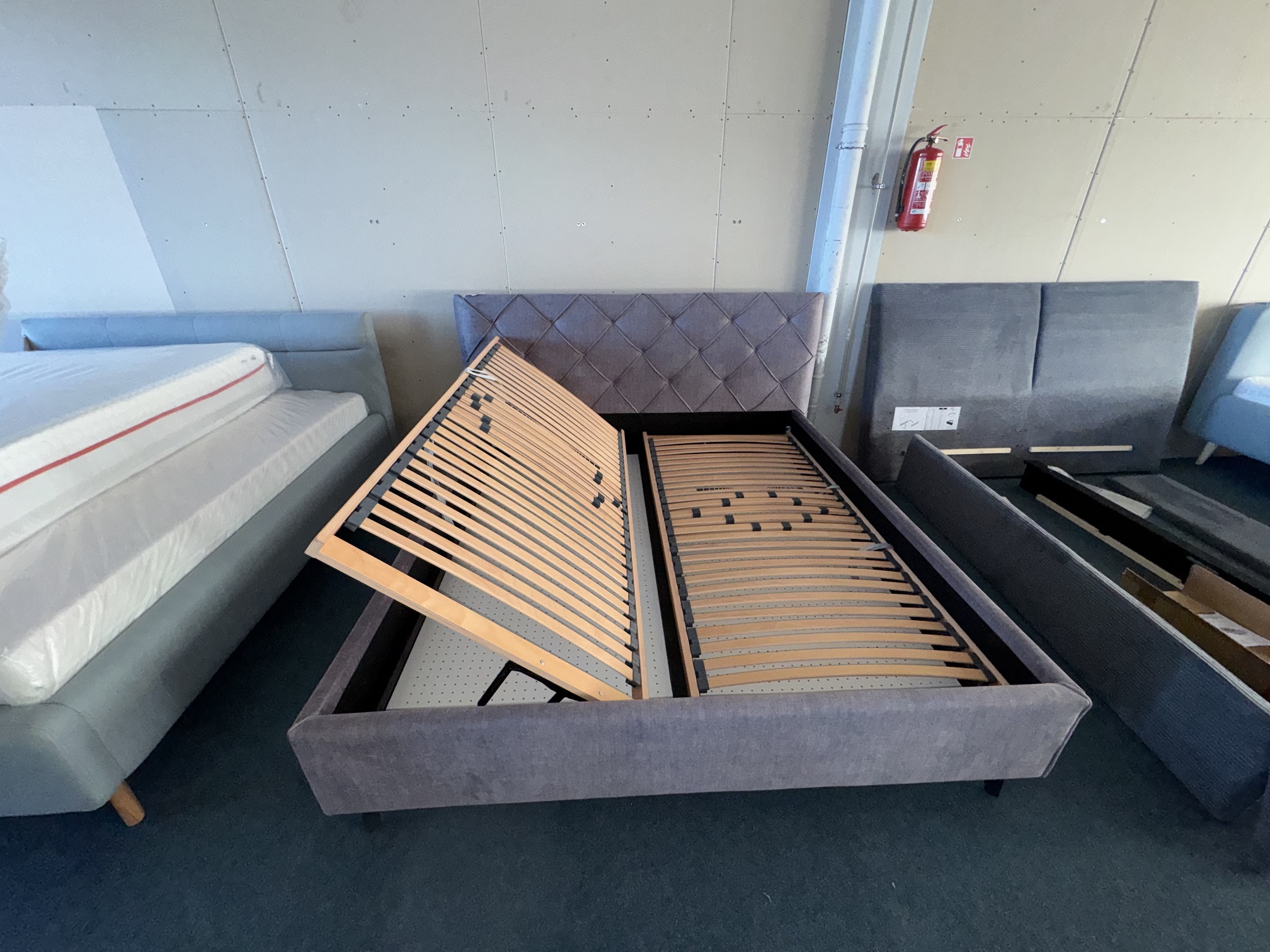 Gulta auduma ar paceļamiem reliņiem un veļas kastēm. Ir pieejami matrači.