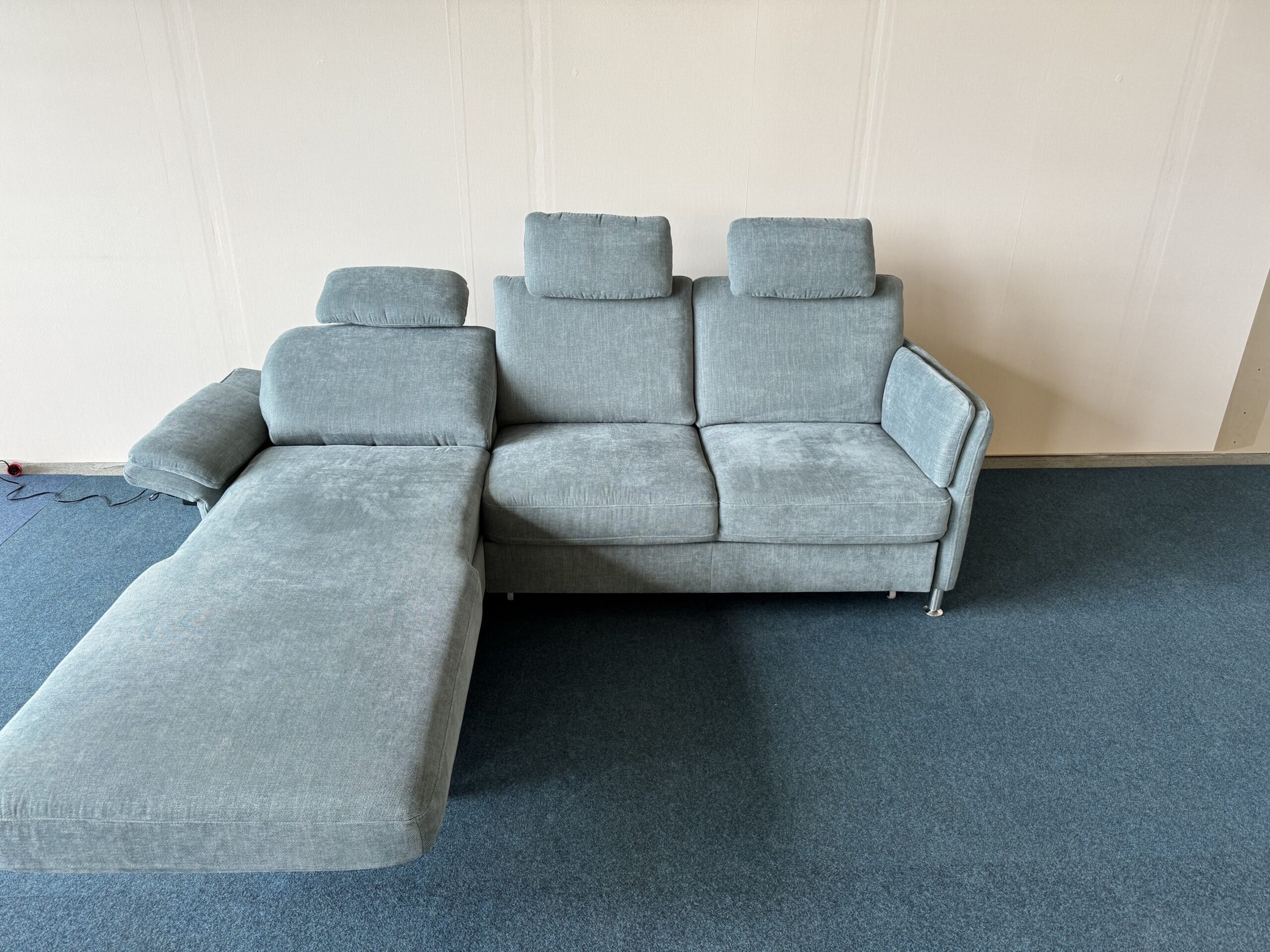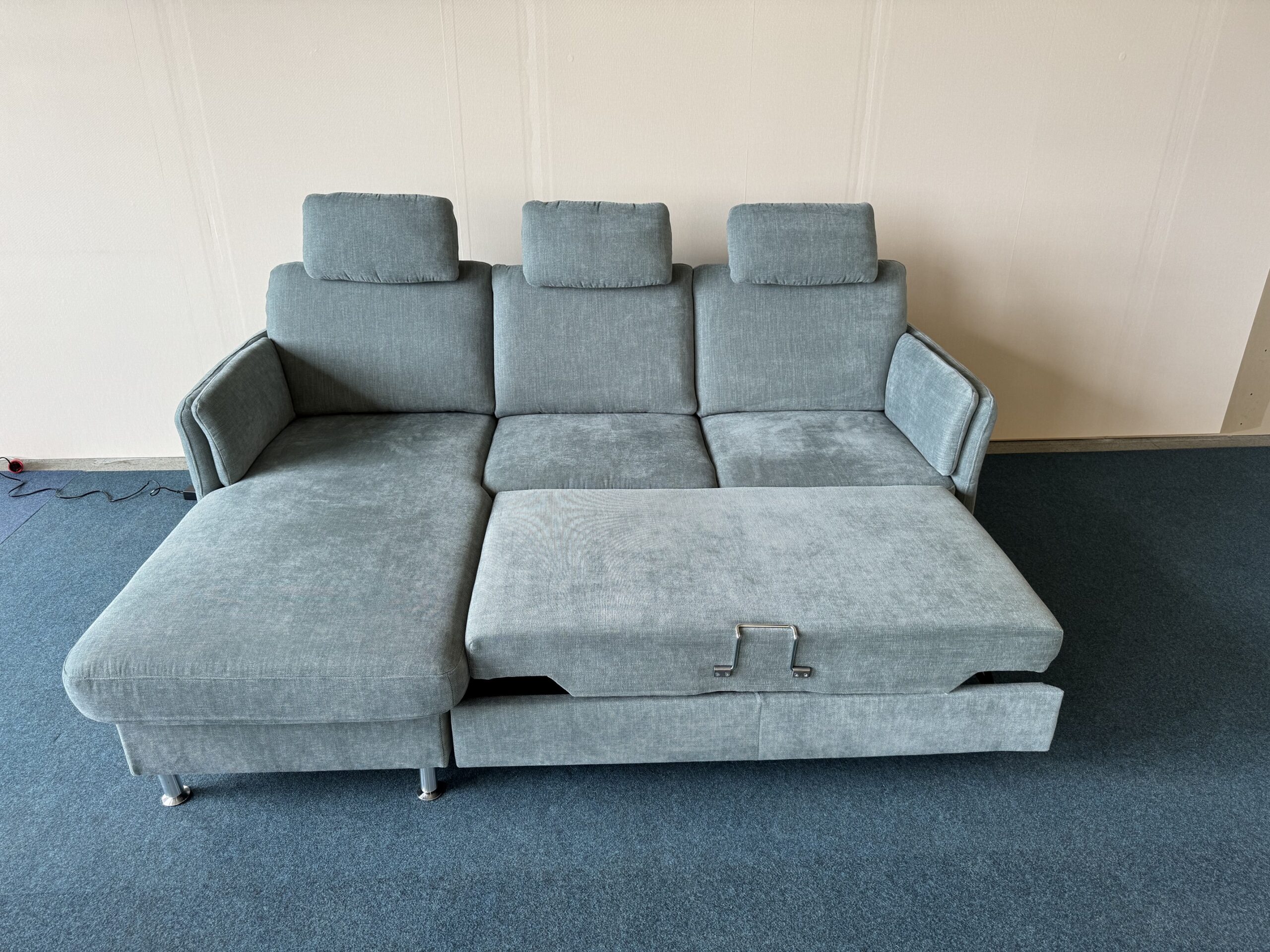 Stūra dīvāns-auduma-izvelkams. Viena dīvāna daļa ir ar relax funkciju. Izvelkamai daļai apakšā ir reliņi. Dižskabārža rāmis. Kvalitatīvi vācu mehānismi.