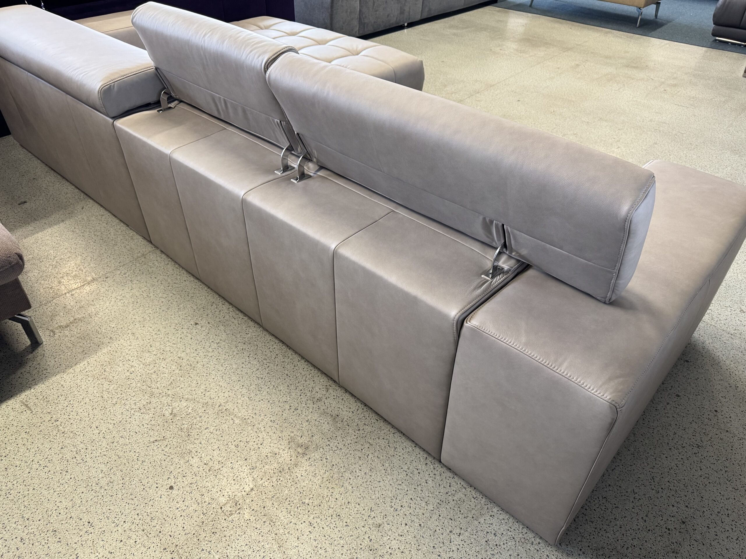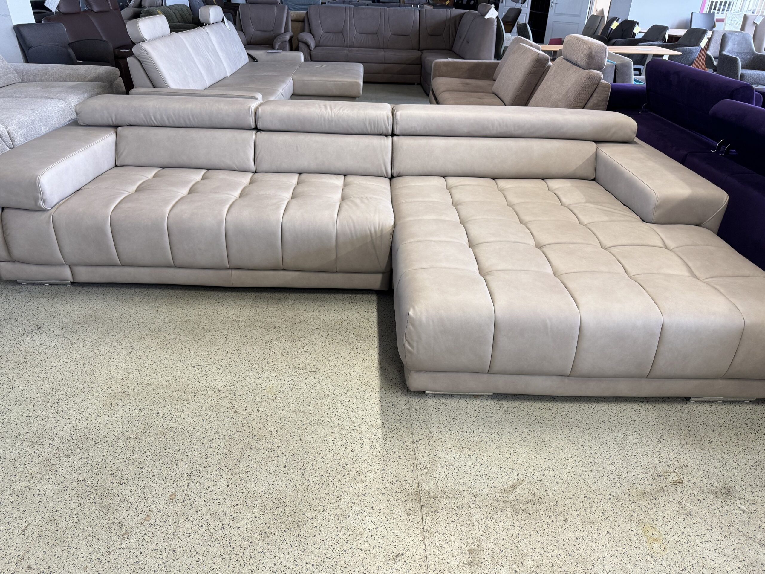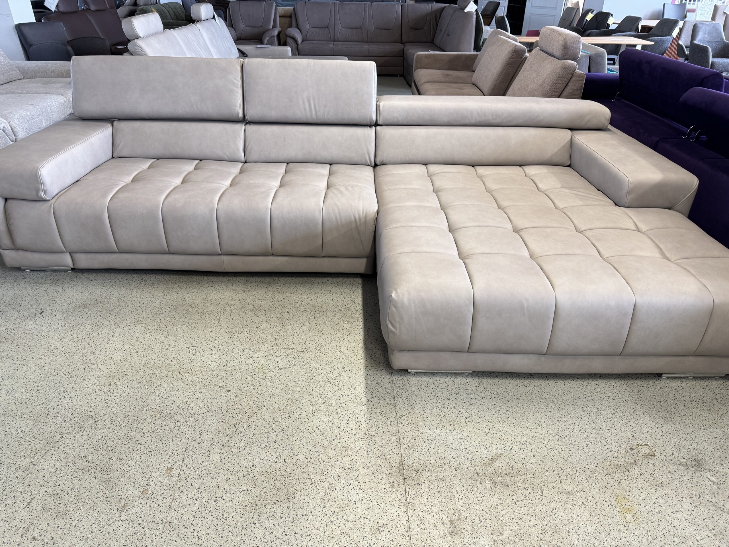 Dabīgās ādas stūra dīvāns. Galvas balsti ir regulējami. Dīvāna aizmugure arī ir no dabīgās ādas. Dižskabārža rāmis. Kvalitatīvi vācu mehānismi.