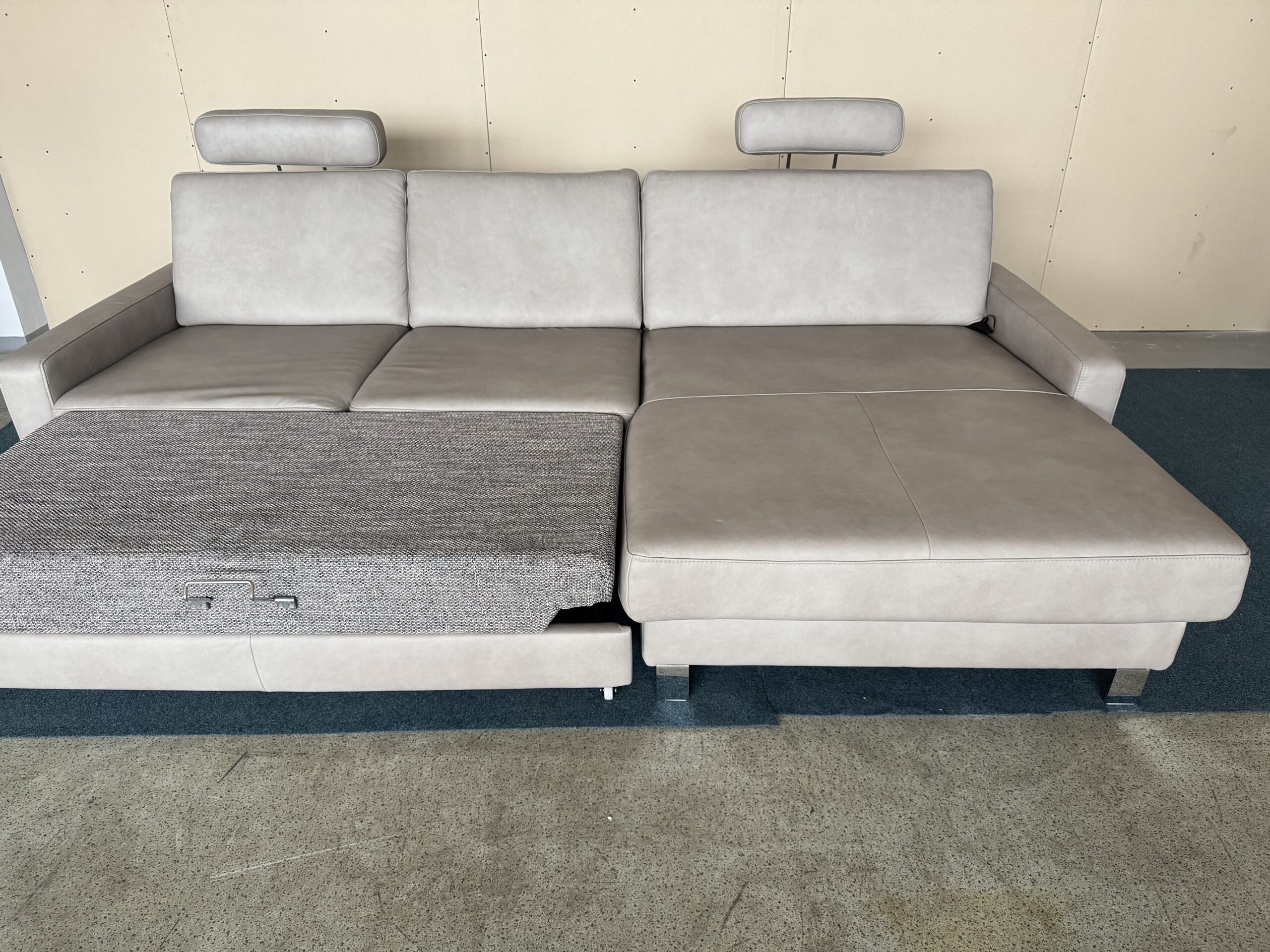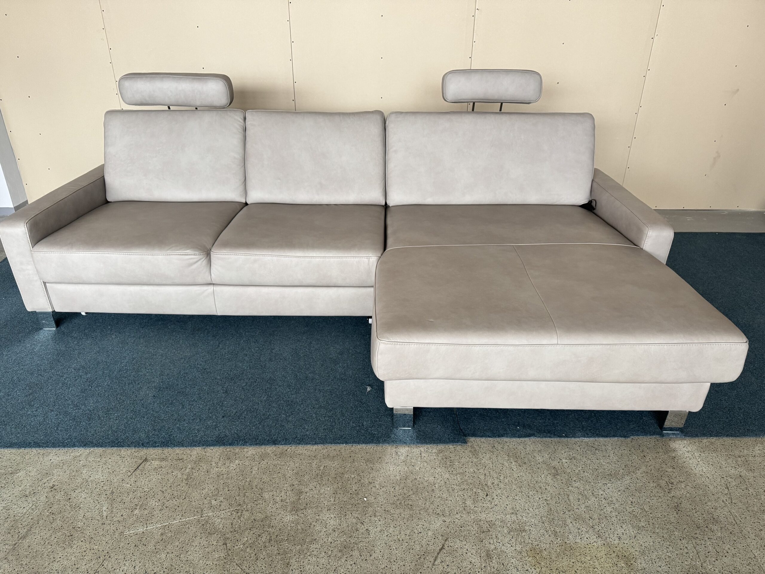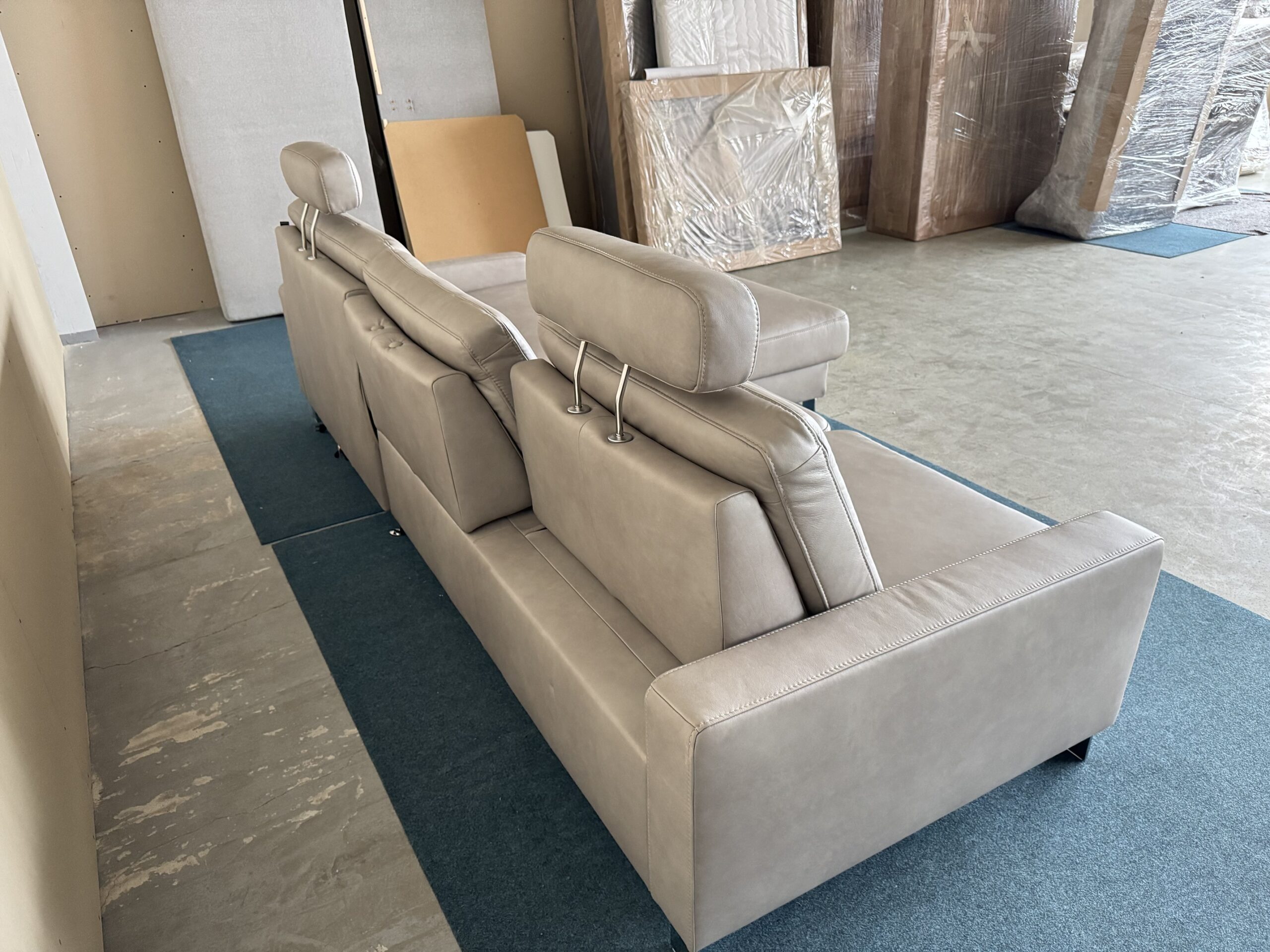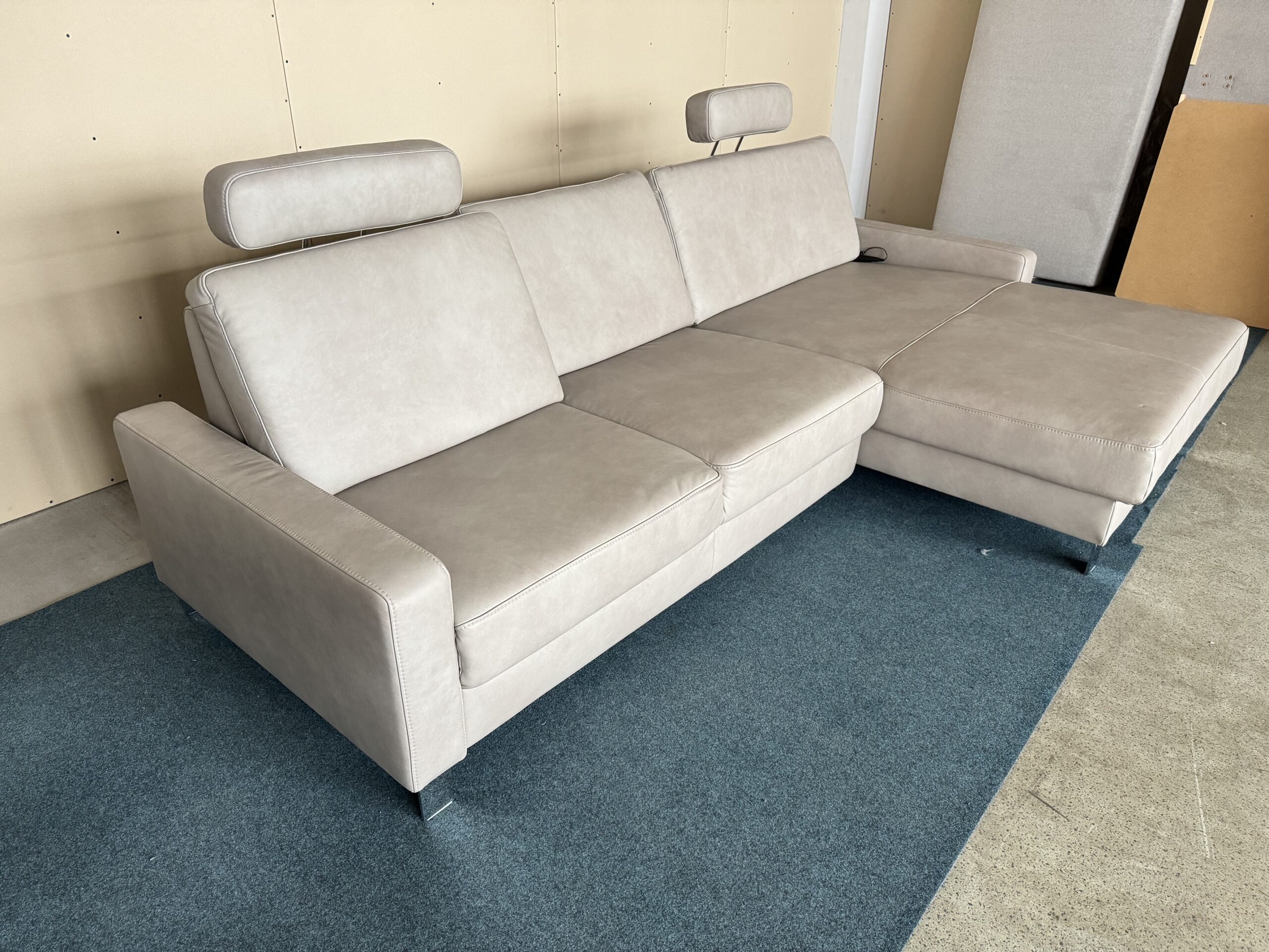 dabīgās ādas stūra dīvāns-izvelkams+relax funkcija vienai dīvāna daļai. Regulējams sēžamās daļas dziļums. Galvas balsti ir regulējami, vai noņemami. Dieter Knoll kolekcija.