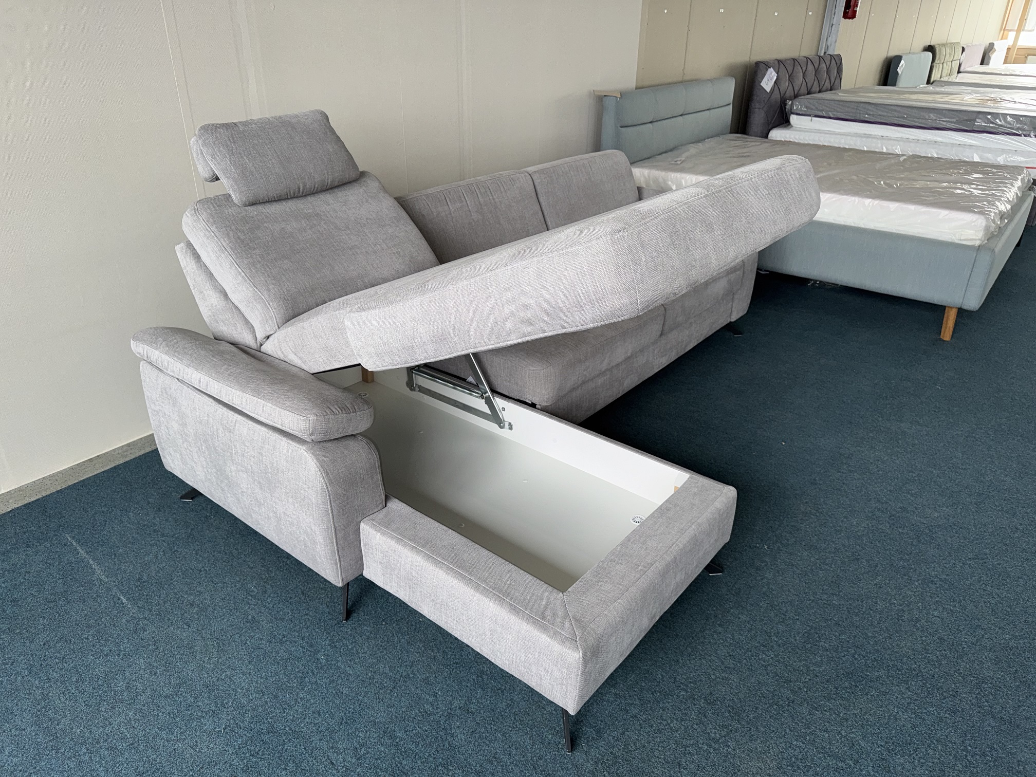 Stūra dīvāns-auduma-izvelkams, ar veļas kasti. Izvelkamai daļai apakšā ir reliņi. Dižskabārža rāmis. Kvalitatīvi vācu mehānismi. galvas balsts ir regulējams, vai noņemams. Roku balsti paceļami. Premium klases dīvāns.