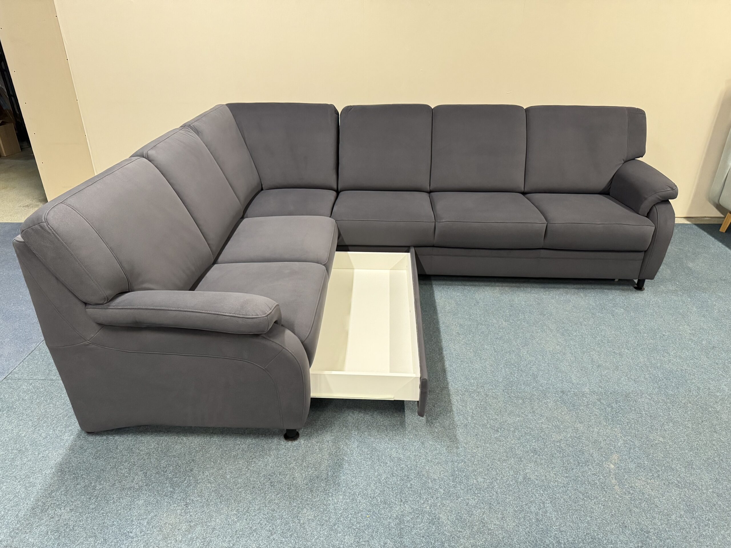 Stūra dīvāns-izvelkams, ar veļas kasti. Izvelkamai dalai apakšā ir reliņi. Dižskabārža rāmis. Kvalitatīvi vācu mehānismi. Viegli kopjams audums-Supralife-anthrazit (attēlā krāsa izskatās gaišāka). Premium klases dīvāns.