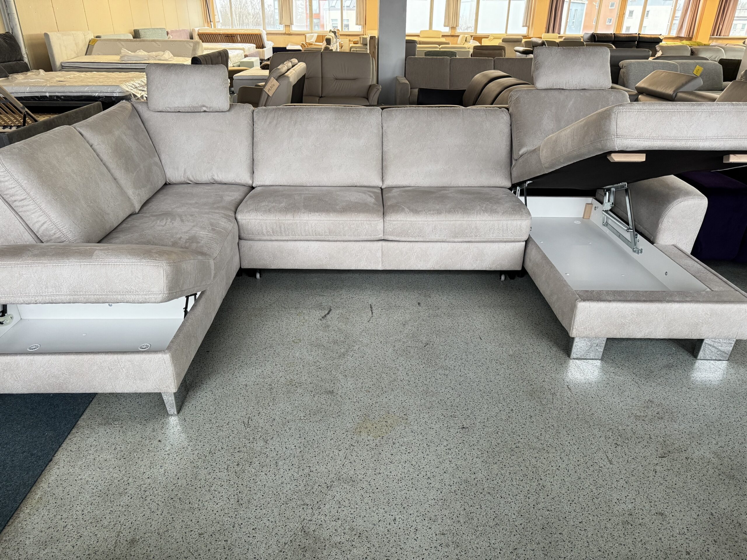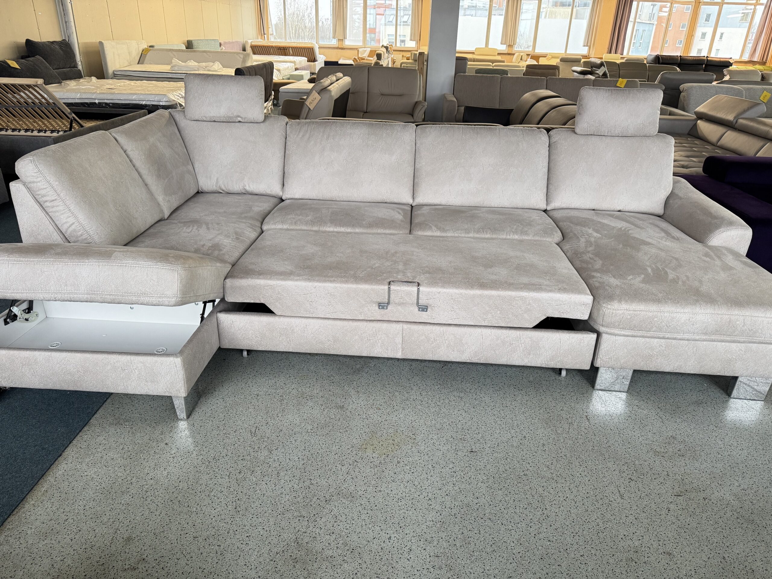 U-formas dīvāns-izvelkams, ar divām veļas kastēm.Viegli kopjams audums. Dīvāna aizmugure ir no tāda paša auduma. Galvas balsti ir regulējami, vai noņemami.